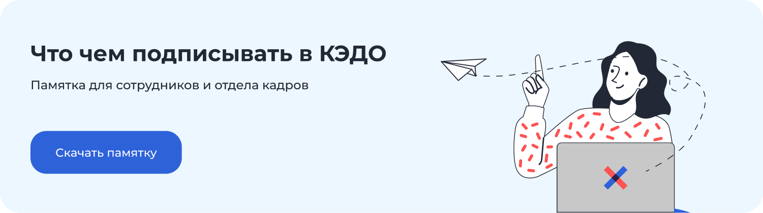 - Внутреннее положение о КЭДО. В нём прописано, как именно компания работает с электронными документами.